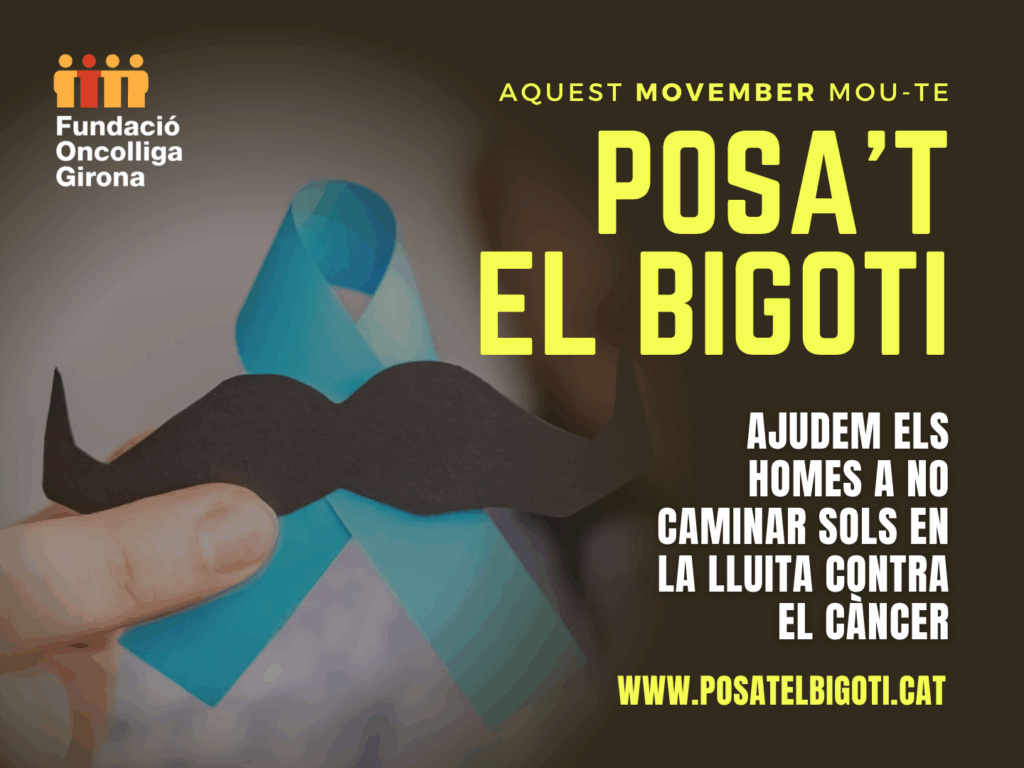 Des de la Fundació Oncolliga Girona, t’animem a sumar-te a la campanya #PosatElBigoti i donar visibilitat al càncer de pròstata, al de testicle i a la salut mental masculina.