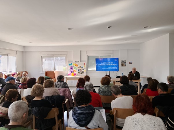 Després d’aquesta visita, el Dr. Josep Vergés va oferir una xerrada molt interessant per a conèixer la realitat de les malalties articulars com l’artrosi o l’osteoporosi. Va donar algunes claus per a la prevenció d’aquestes malalties, va oferir alguns consells pràctics per al tractament i l’atenció mèdica i la possibilitat de fer preguntes i consultes a les persones assistents.
