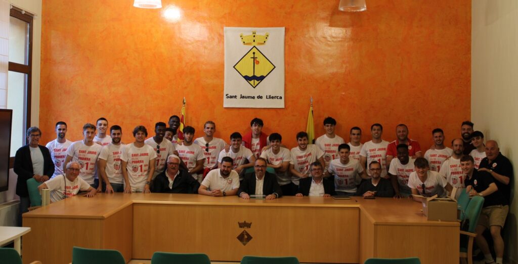 Aquest divendres, l’Ajuntament de Sant Jaume de Llierca ha acollit la recepció oficial als jugadors, cos tècnic i junta directiva del CF Sant Jaume, com a reconeixement per l’ascens del primer equip a Primera Catalana, una fita esportiva que situa el club en un dels moments més destacats de la seva trajectòria.