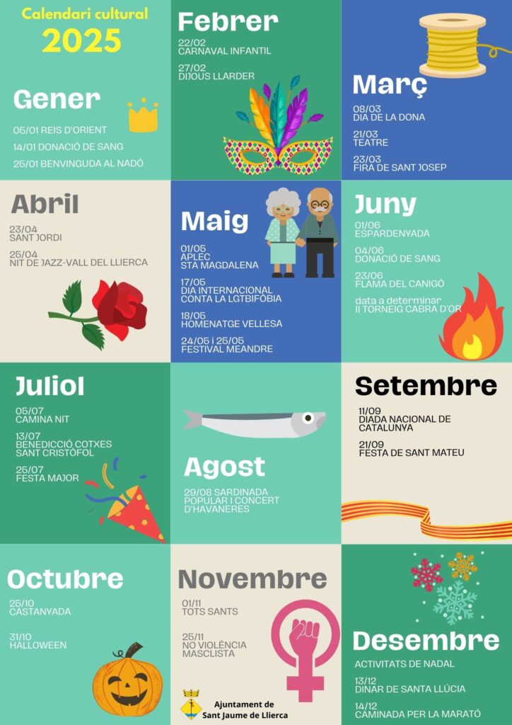 L’Ajuntament convida tota la ciutadania a participar i gaudir d’aquest any ple d’esdeveniments. El Calendari Cultural 2025 ja està disponible al web municipal i als canals oficials d’informació del consistori.